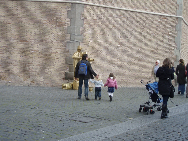 ローマの観光地(特にコロッセオ周辺?!)によく立ってる”黄金の像”。
