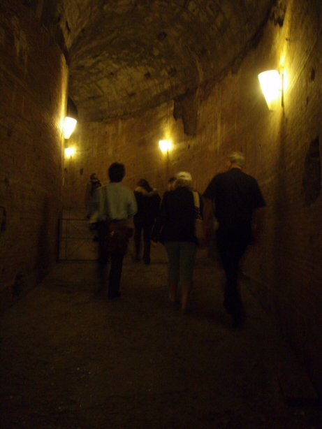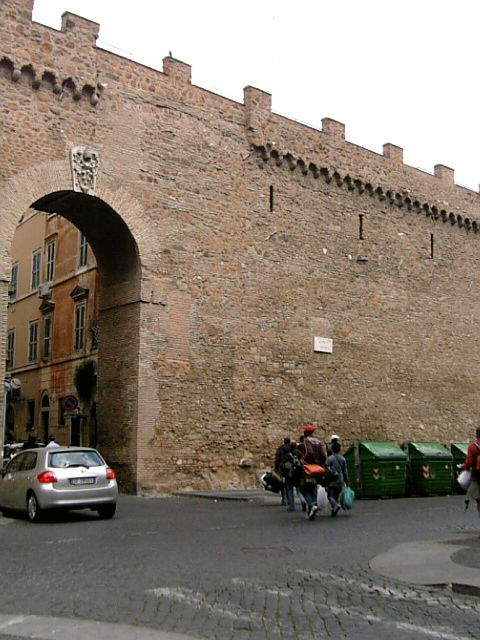 向かって右手に見えるカステラ色の城壁は中が通路になっていて、