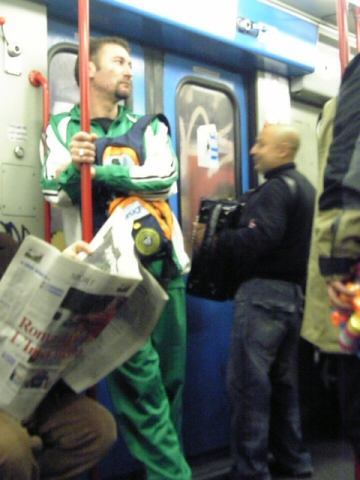 演奏後に小銭をいくらかゲットした後、彼は3つ隣の車両に移動し