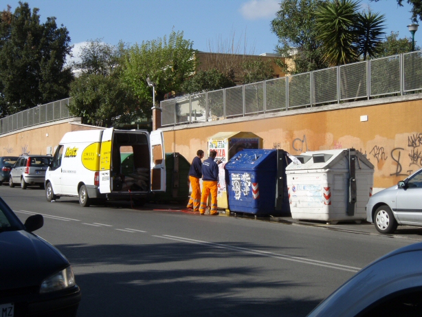 学校に戻ると、なにやらアヤシイ作業をするイタリア人が。