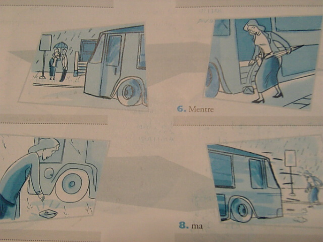 同じシチュエーションを日本語で日本風に語るなら、『Ersiliaは雨が降りそうなので折りたたみの傘を持って、家を出、バスに乗った』ってすぐ終わっちゃって勉強にならないだろうなぁ(笑)