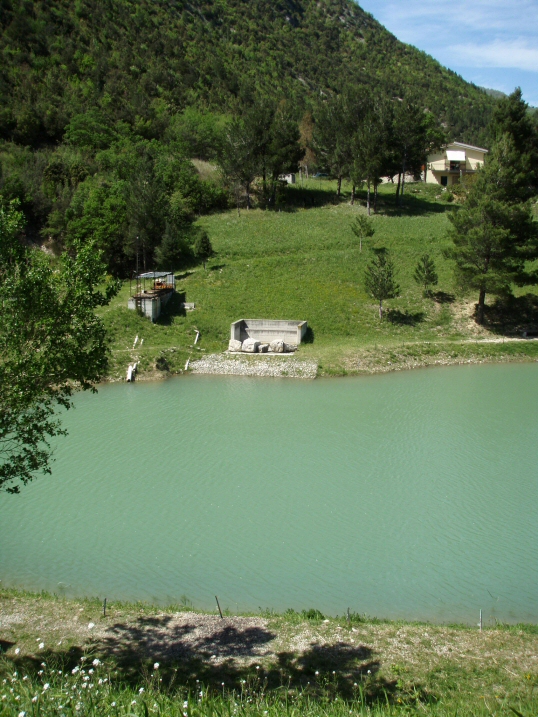 不安な道を更に進むと、いきなり眼前に不思議な色の湖が。