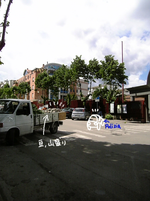 そこに一台の青白クルマ・・・Polizia(ポリッツイア/警察)のクルマが
