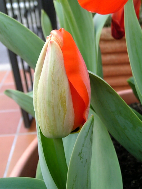 チューリップはね、この緑の部分がたぶん赤い花弁に