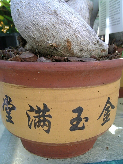盆栽に書かれた漢字、日本人が見ると恥ずかしいと思っちゃうんだけど