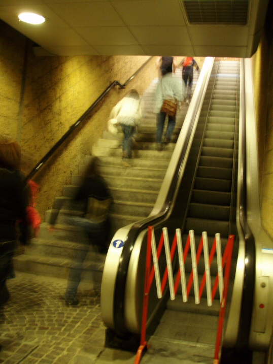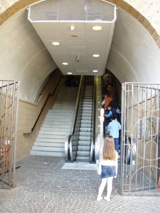 少し降りていった先に大きな駐車場を見つけ、そこからエスカレーター?
