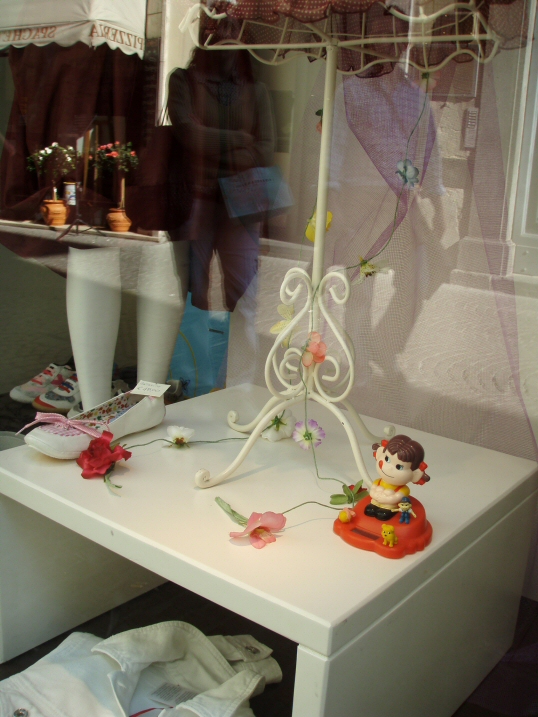 メインストリート沿いにある美術品を扱う店先にはこんな看板が。