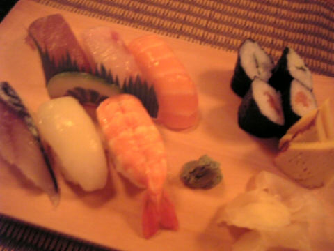 久しぶりの冷酒(・・に見えないけど(笑))と寿司。
