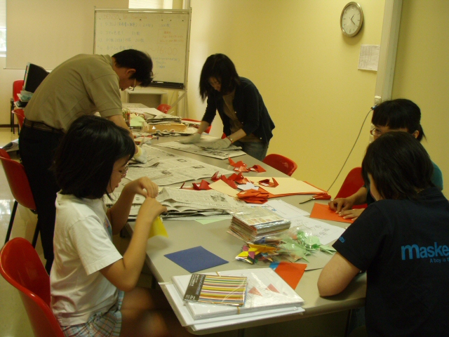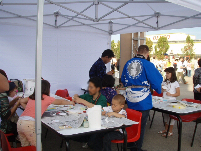 日本のブースは子供向けに?”折り紙””とんとん相撲”独楽”を用意。