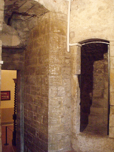 壁の石には今まさに渦中のラクガキが・・・英語とイタリア語の模様。