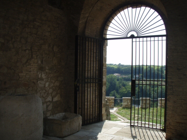 この町に来た時の外輪の道(木の生い茂った山道)とさっき通ってきた門