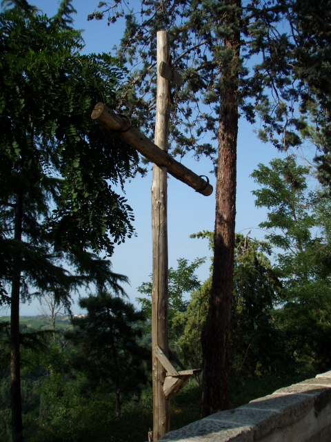 門をくぐってすぐの脇に蜘蛛の巣のかかった古そうな器具が・・・