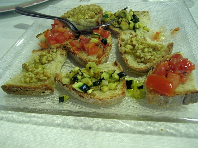 ブルスケッタはなんと3種。彩りが美しい・・・