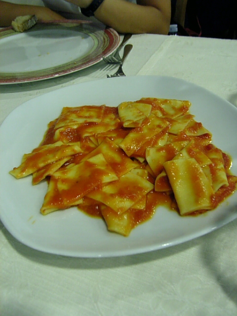 他の友達は町の名前のついた平たいパスタ、豆とパスタのスープのような