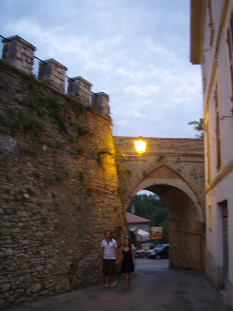 この門をくぐってすぐ、城のそばでお茶したバールがあるのだが・・