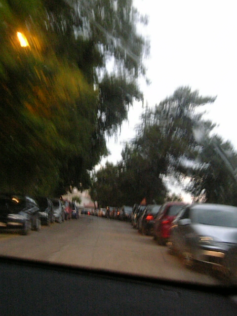 町に入る前の森の中の小道にまで路駐の列。