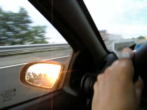 クルマを走らせる高速道路の上、背後の夕日が眩しかった。