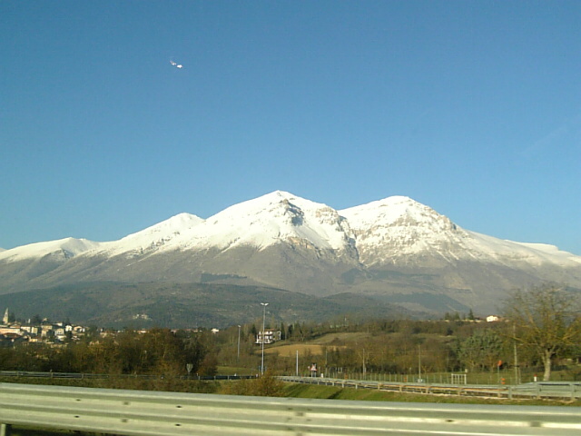 ローマに向かう高速から臨む山々はスッカリ雪化粧。