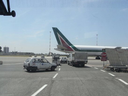 往路、三列シートの窓際には若いイタリアーナ、そしてその横に