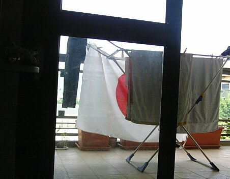 汚れそうだったし風も強かったので、物干しに日の丸。