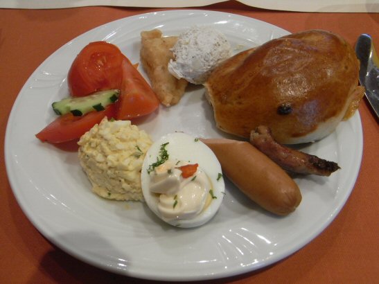 ホテルの朝食は毎度お馴染みバイキング。