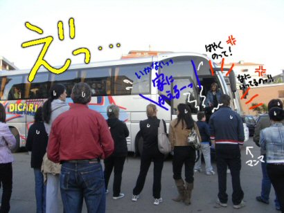 大声で怒鳴りながらバスから離れるジャイアン(仮名)。