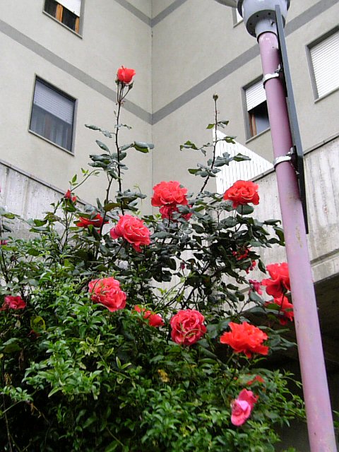わからない箱庭に、かなり迫力のある咲き方をした薔薇を発見。