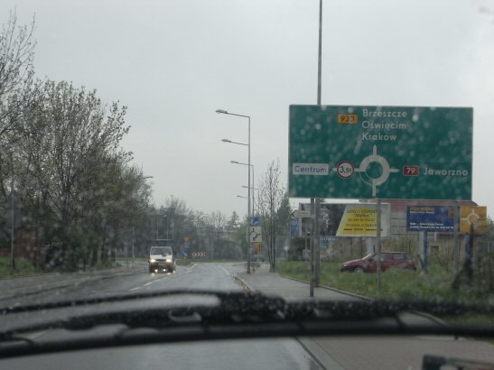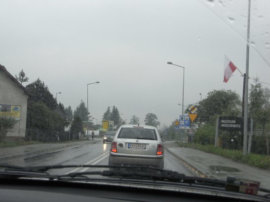 高速を降りて、しばらく走るとオシフィエンチムの標識が。