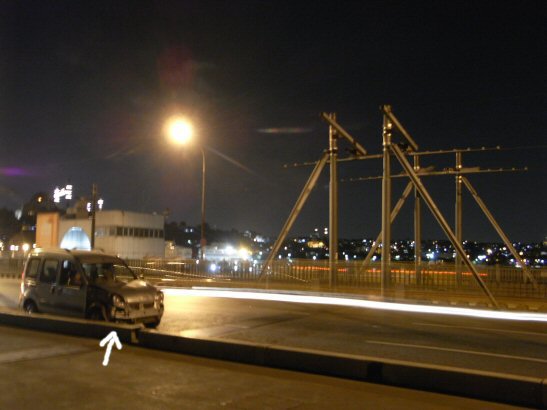 何度も通ったガラタ橋。よく見たら事故りたてのクルマが・・・