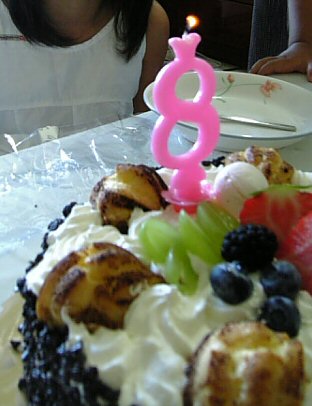 まだ幼いガールフレンドの大事なケーキに差すのをためらう・・・