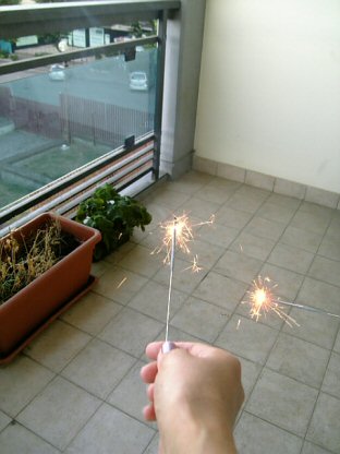 パーティ用花火を使うぞ~とウキウキ。