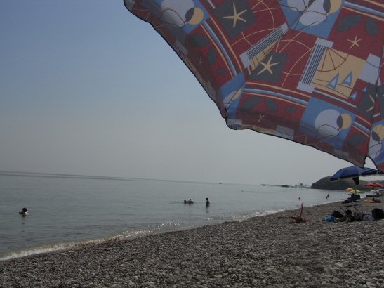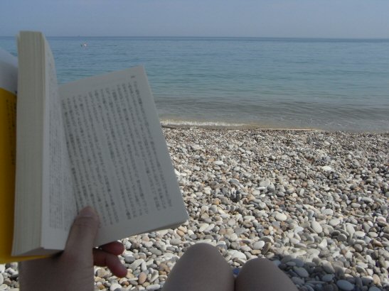 とりあえずパラソルの下で読書。