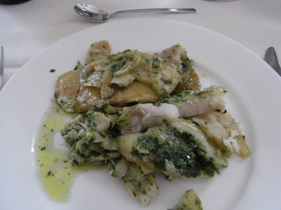 タラ?に、ブロッコリーとじゃがいもをオリーブオイルであえた