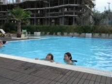 部屋で一服して16時前にホテル内の屋外プールへ。