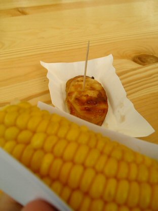 帰り際、まだ開いていた屋台でまたトウモロコシを買うムスメ。